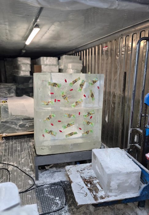 מיצגי קרח בעיצוב של סווינג אייס – סטודיו לפיסול בקרח עם מחזיקי מפתחות ועטיפות ארטיק – צילום יח"צ זאביק דרור